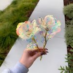 Každá ruža je vyrobená s dúhovým, holografickým povlakom, ktorý sa na svetle nádherne trbliece a vytvára trblietanie pripomínajúce galaxiu, ktoré je jednoducho fascinujúce.