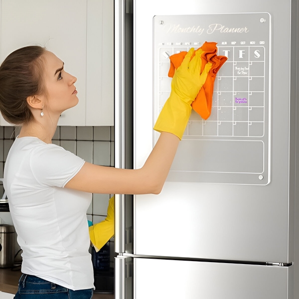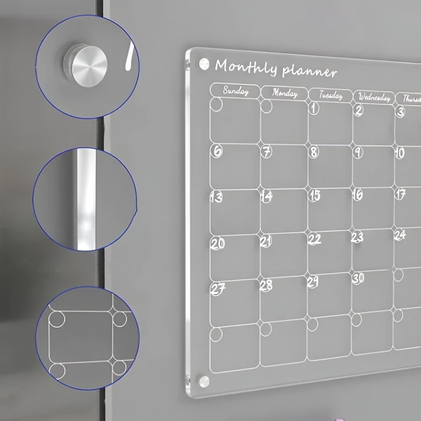 Papierové plánovače sa po mesiaci vyčerpajú a skončia v koši. Číry akrylový povrch sa úplne dočista utrie v priebehu niekoľkých sekúnd pomocou priloženej handričky – žiadne stopy, žiadne škvrny, žiadne zvyšky. Povrch je odolný voči poškriabaniu a škvrnám, takže zostáva krištáľovo čistý aj po stovkách zmazaní.