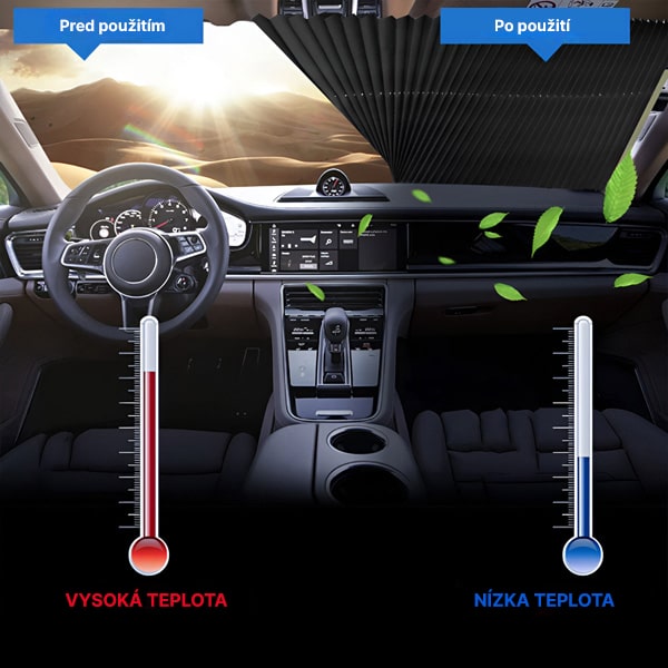 Náš produkt účinne blokuje škodlivé UV lúče, čím zabraňuje prehriatiu a degradácii vášho auta. Pomáha udržiavať chladnejší interiér a výrazne znižuje poškodenie sedadiel a palubnej dosky vášho auta.