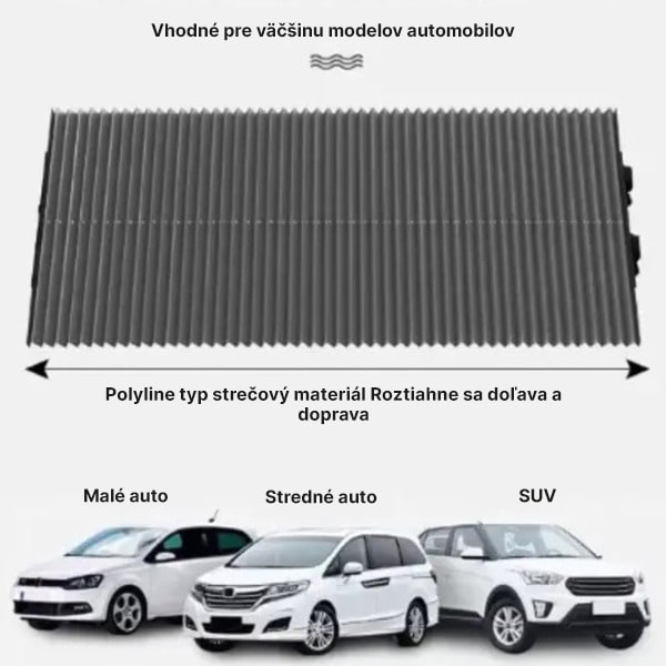 Táto slnečná clona je navrhnutá tak, aby sa hodila pre širokú škálu vozidiel, vrátane áut, dodávok, nákladných áut a SUV. Je univerzálna, pretože šírku môžete jednoducho upraviť na požadovanú veľkosť.