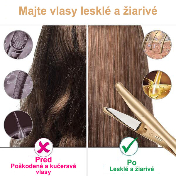 Model s PTC vyhrievaním a titánovou doštičkou vytvorí lesklejší a hebkejší výsledok v kratšom čase a zabraňuje frizzu na dlhší čas a s menším poškodením. Vhodná pre všetky typy vlasov.