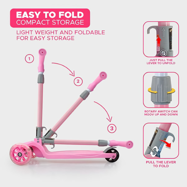 V okamihu, keď deti uvidia tie svietiace kolieska, stane sa kolobežka ich najobľúbenejšou vecou. LED kolieska automaticky blikajú pri každom odraze – nie sú potrebné batérie, poháňané sú výhradne rotačným pohybom. Viac času na jazdu, žiadne cesty do obchodu pre batérie.