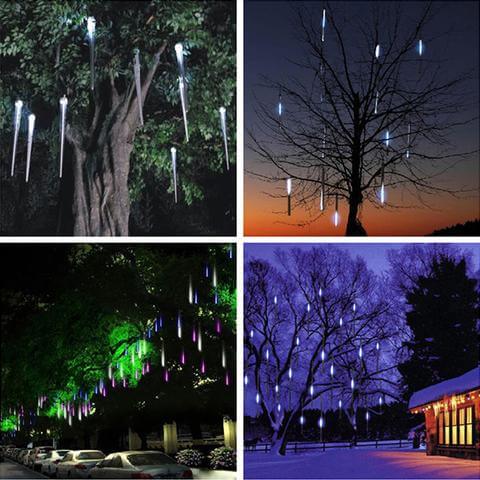 Padanie meteoritov Efekt s romantickou estetikou: Pri svetlách v štýle padajúcich meteoritov sa svetlo každej žiarovky postupne a rýchlo rozsvecuje a zhasína, imitujúc tak meteorický dážď alebo padajúci sneh na nočnej oblohe, je to nádherný pohľad.
