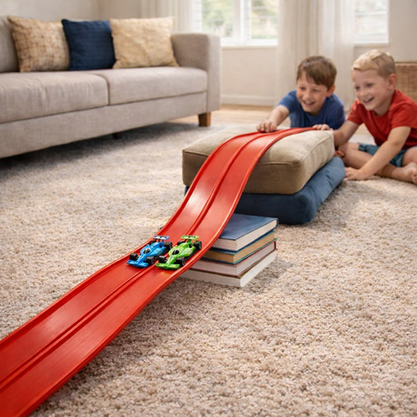Deti môžu tvarovať dráhu pomocou bežných predmetov a vytvárať skoky, tunely a slučky, čo podporuje predstavivosť a riešenie problémov namiesto opakovanej hry. Udrží deti sústredené celé hodiny bez obrazoviek.
