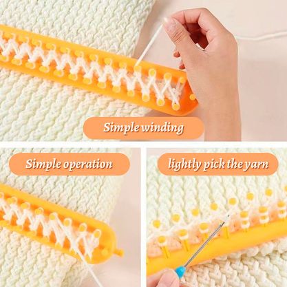 Táto pomôcka sa používa veľmi jednoducho – jediné, čo musíte urobiť, je natiahnuť na ňu vlnu a obtočiť ju okolo kolíčkov. Keď skončíte, stačí vybrať vlnu z nástroja!