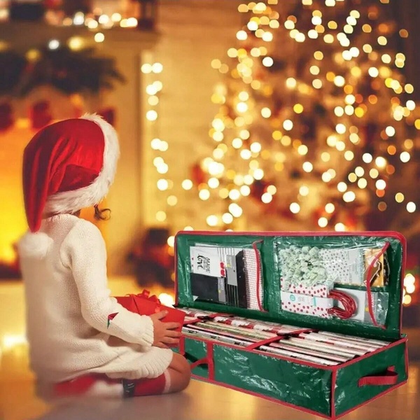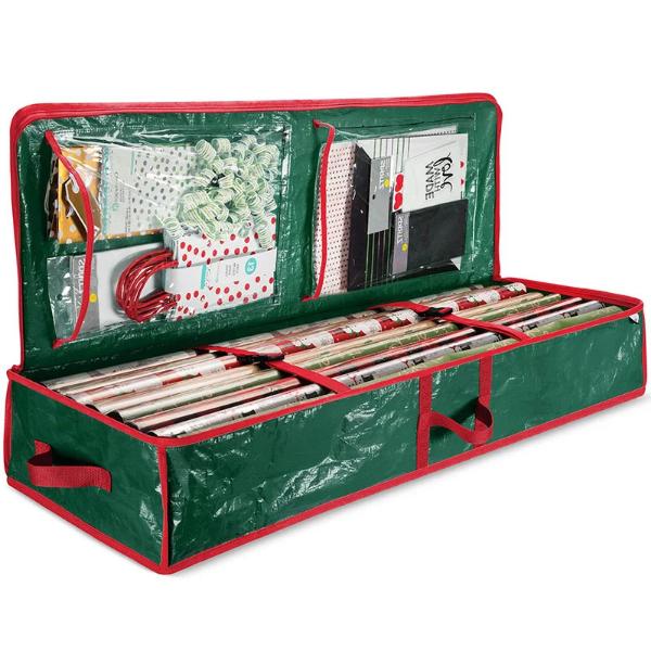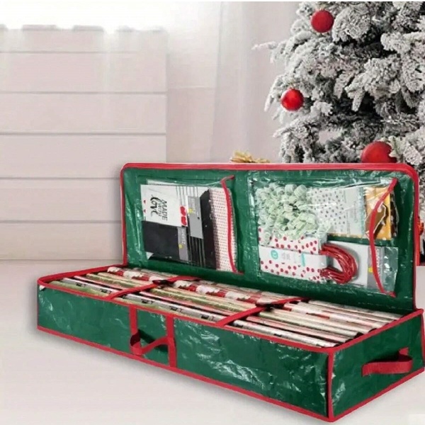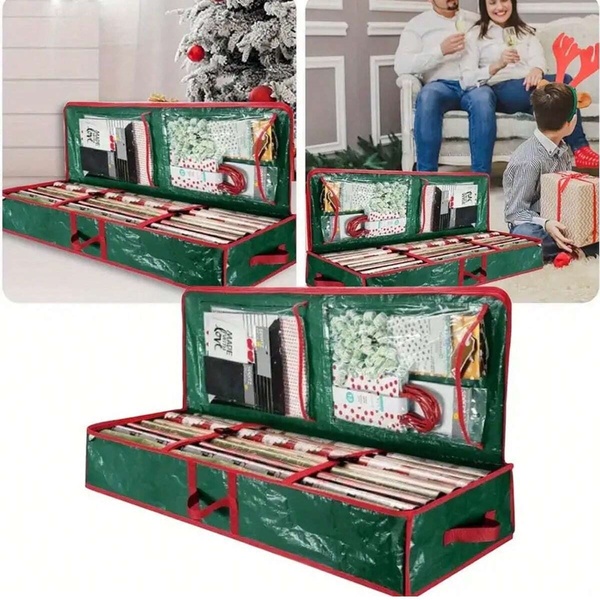 Táto taška s dostatočným priestorom uskladní všetok váš sviatočný baliaci papier a udrží všetko na jednom mieste pre ľahký prístup počas rušných sviatočných dní.